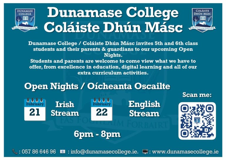 I am delighted to welcome you to Dunamase College, Coláiste Dhún Másc.