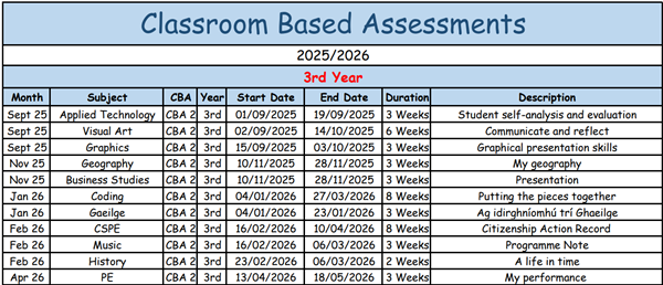 CBAs are assessments that take place in the 2nd and 3rd years.