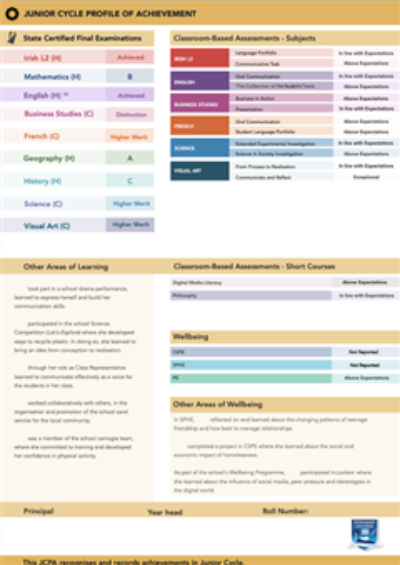 A JCPA is awarded to a student upon completion of their three-year Junior Cycle