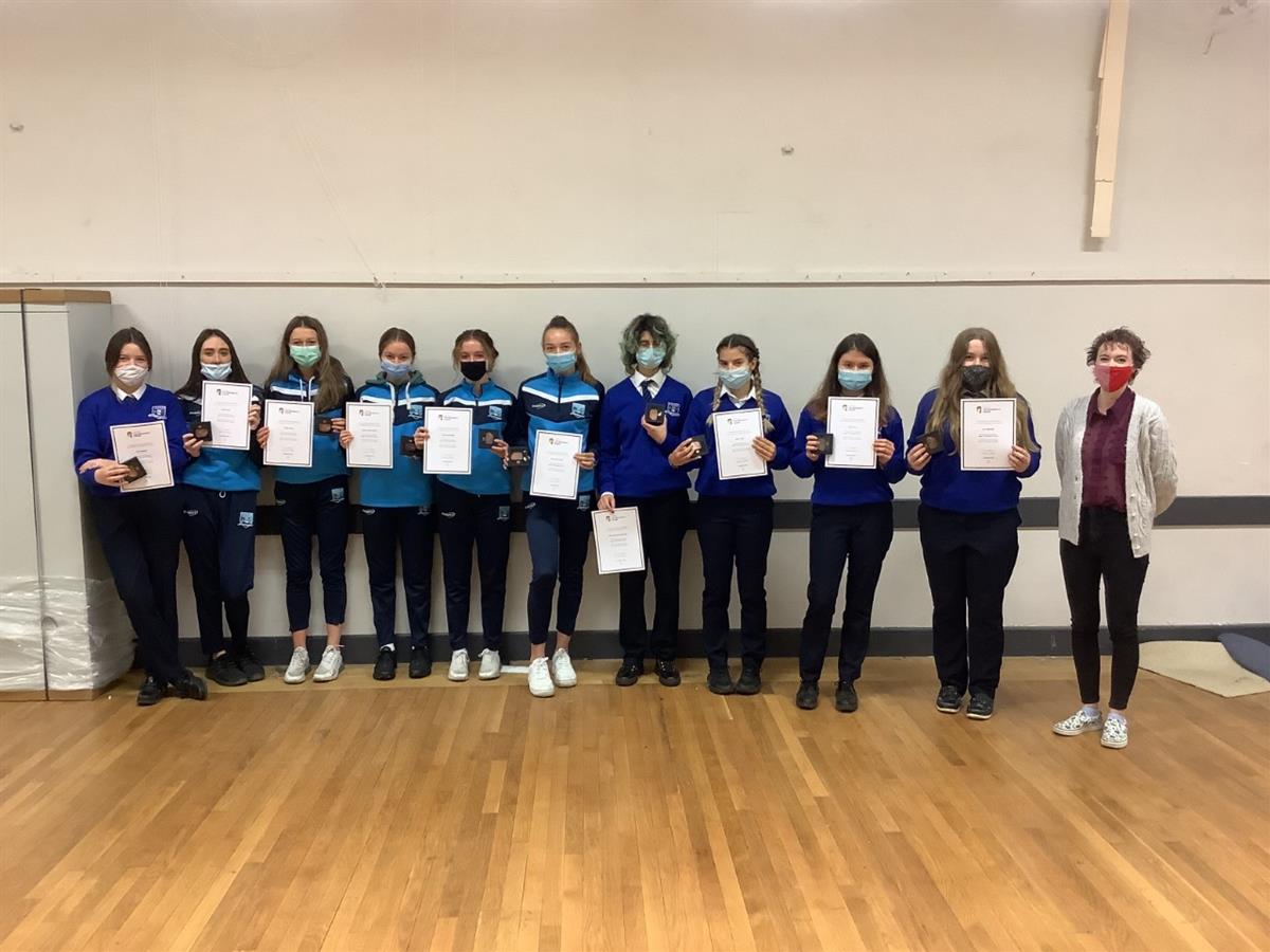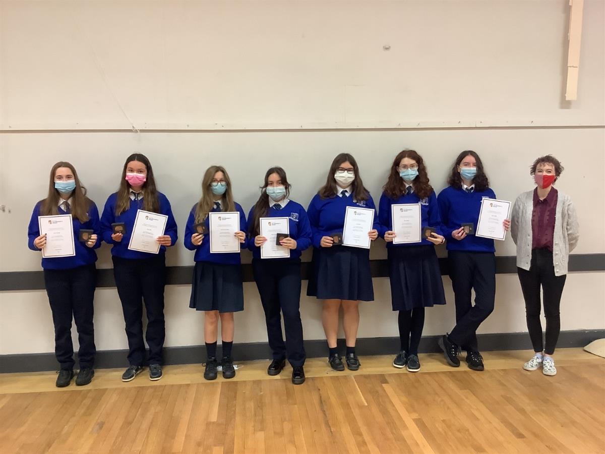 Thursday 23rd February 2023 Dunamase College/Coláiste Dhún Másc celebrated 14 students who successfully completed their bronze and silver Gaisce award. Gaisce Awards are non-competitive and self-directed, so the participants choose their own activities, goals and projects with the support of their President’s Award Leader (or PAL). Mary Yore, our Gaisce regional development officer presented the students with their certificates, badges, and medals. Mary explained to the group that Gaisce is not an award you win but an award you earn. The incoming Transition Year students were in attendance to honour these 14 students. Students will now move on to their next Gaisce award in the coming months. A massive thank you must be given to our Gaisce Coordinator Aisling McAuley and PALs Genevieve, Darragh and Deirdre for the support, guidance and encouragement given to the 14 students on their successful journey. Congratulations to all the recipients, we are very proud of you.