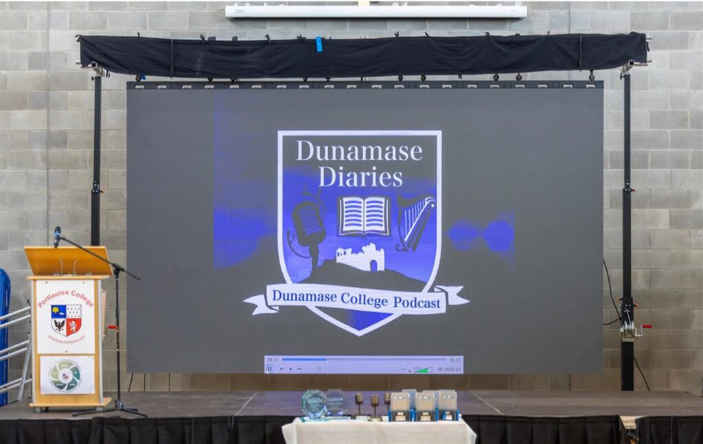 Podcasting has been a great success in Dunamase College, with our students winning the overall prize at the LOETB STEAM showcase event 2024.Our students took top honours in the overall Podcast competition for their brilliant ‘Dunamase Diaries’ podcast.